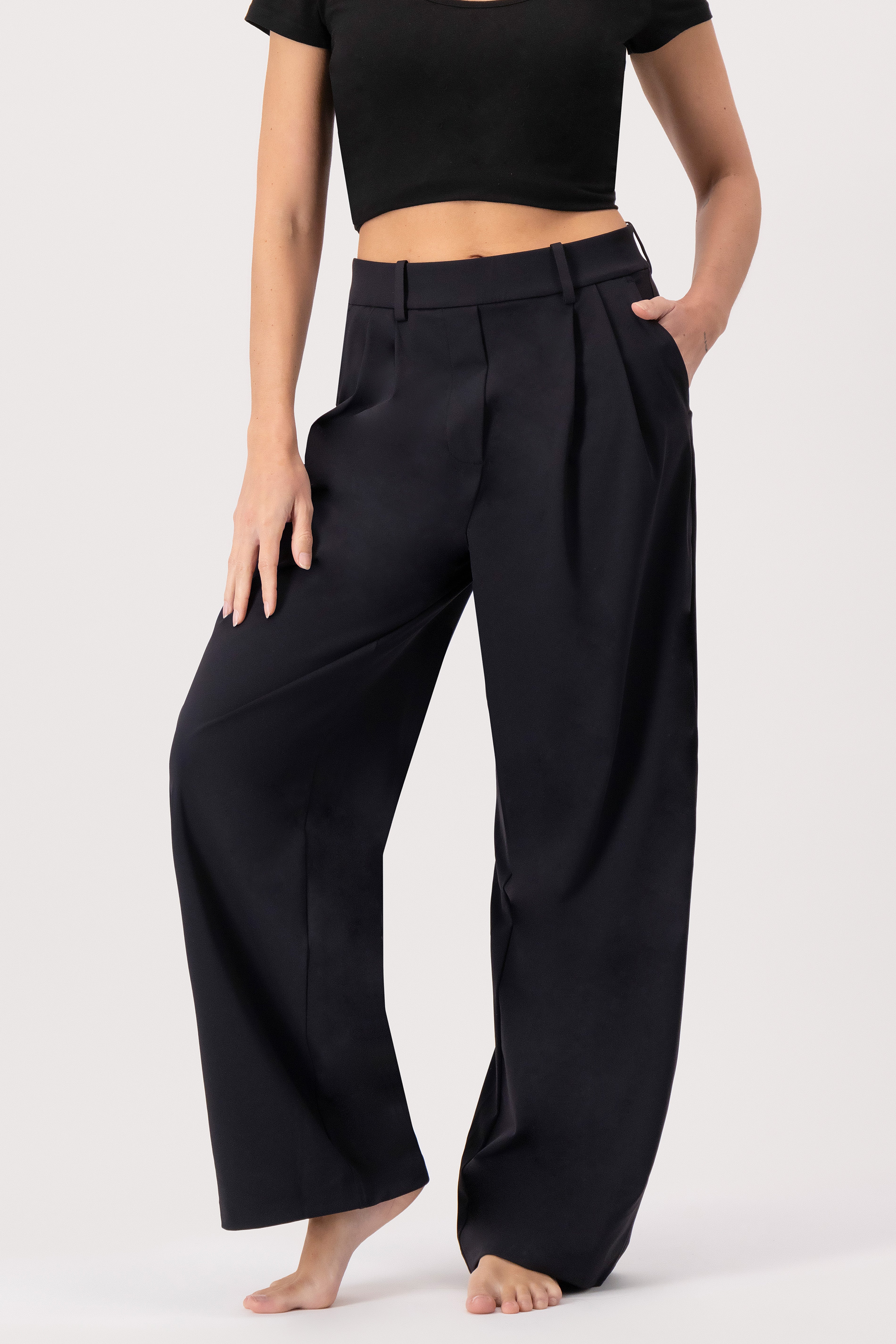 Su diseño de pretina estructurada con trabillas para cinturón aporta un acabado más pulido, mientras que la pierna amplia mantiene un look moderno y effortless. Un pantalón cómodo y fácil de combinar que se adapta a distintos estilos, desde un outfit casual hasta uno más elevado.