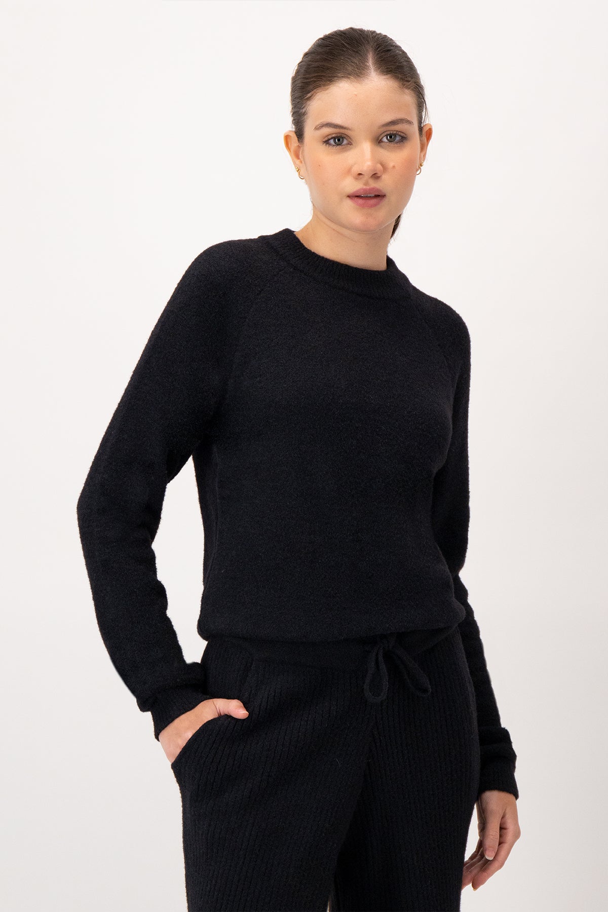 Combínalo con los Mel Pants para un conjunto cómodo y elegante, ideal para relajarte en casa o para salir con un look casual y sofisticado.